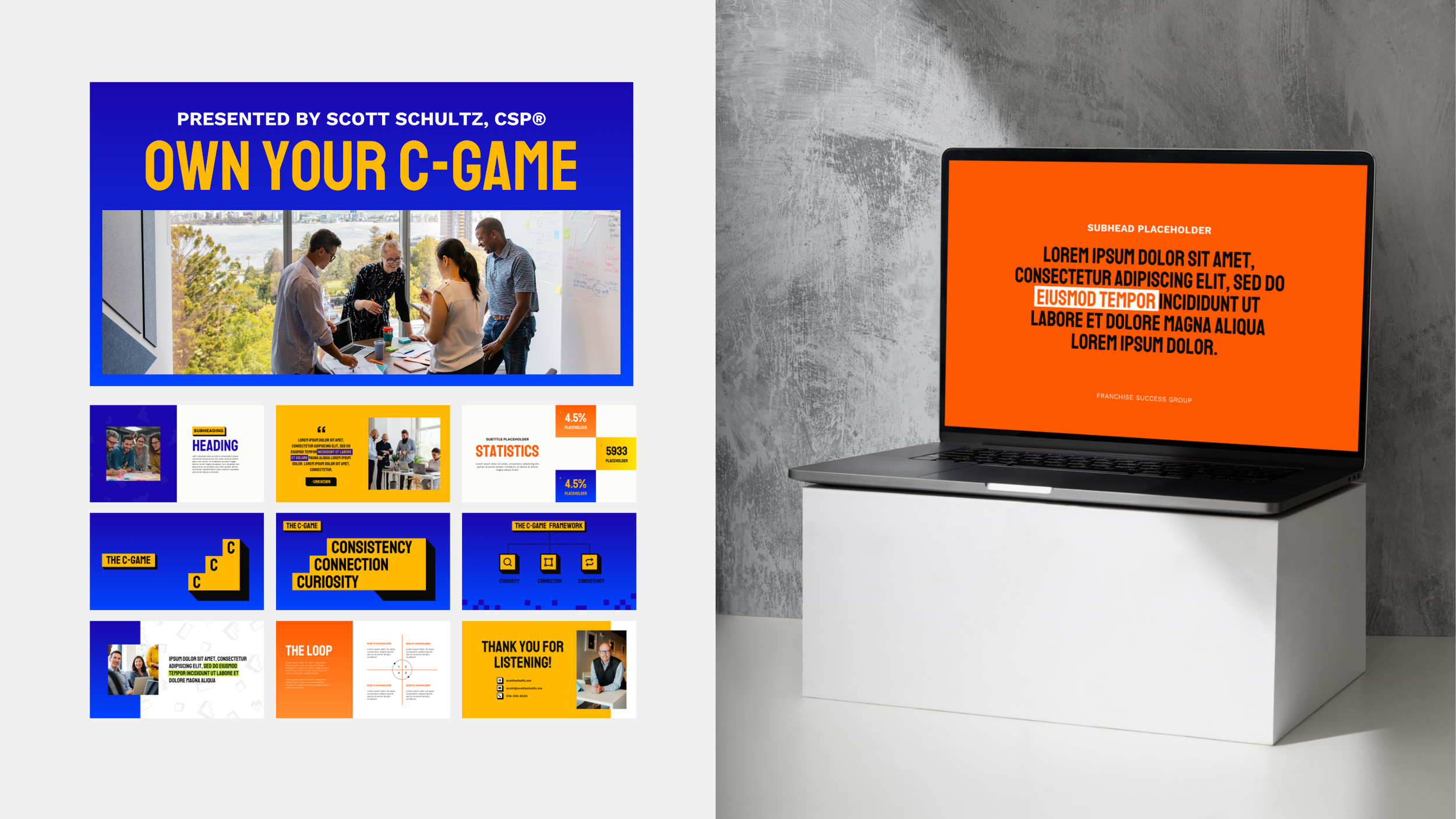 Scott reached out needing a full keynote slide deck for the Pizza Hut Summit where he’ll be speaking at, with a turnaround of less than a week. At the same time, we were still building the Franchise Success Group brand, but the core elements were already in place, which allowed us to use those foundations for this project. He wanted a presentation that felt dynamic, impactful, and aligned with both his brand and his client's audience.
